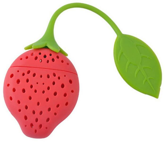 Szilikonból készült, eper alakú teatojás , mellyel minden teázás mosolygósan kezdődik.